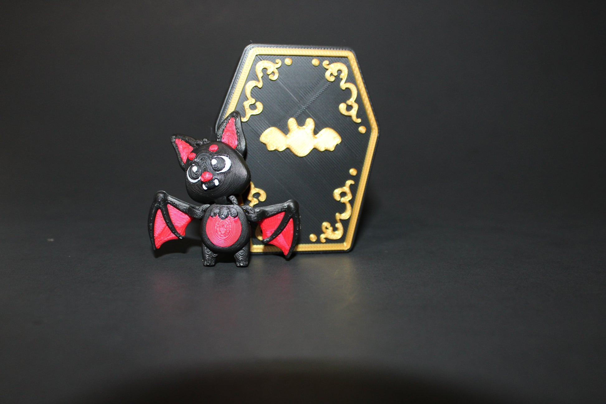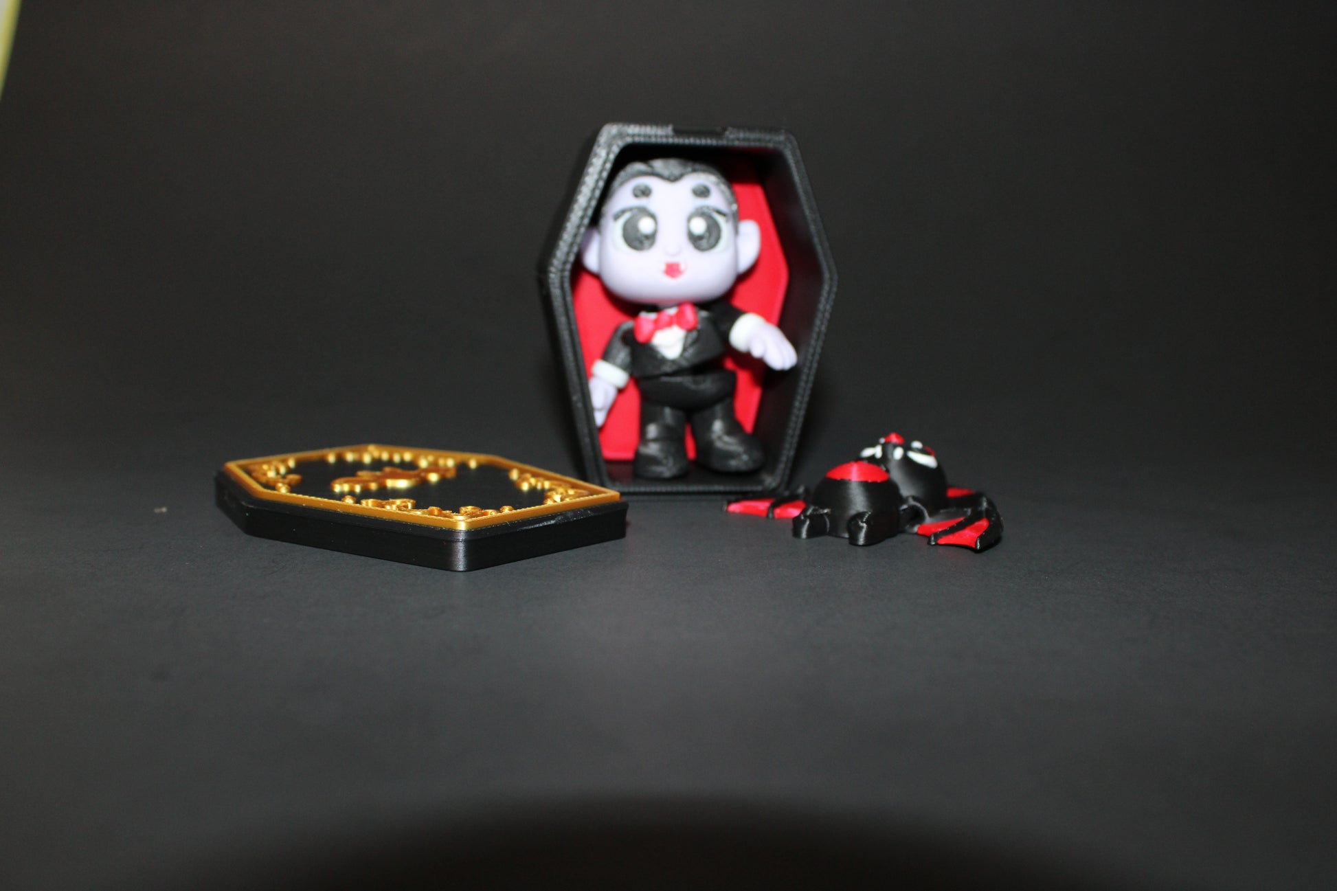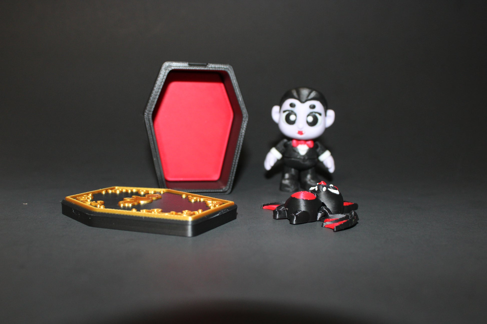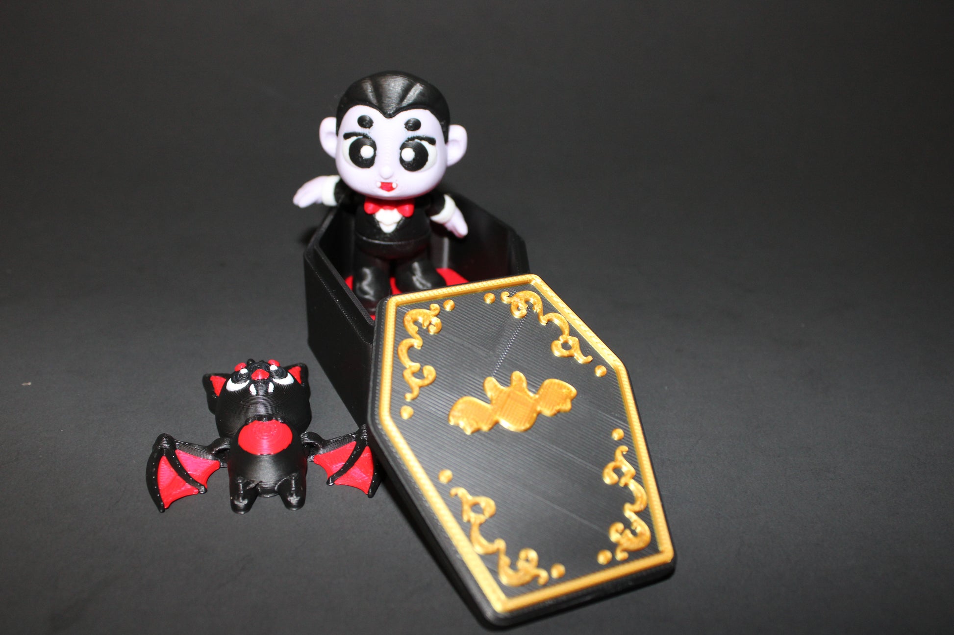 3D Printed Articulated Dracula with Coffin and Tiny bat 2.5"
