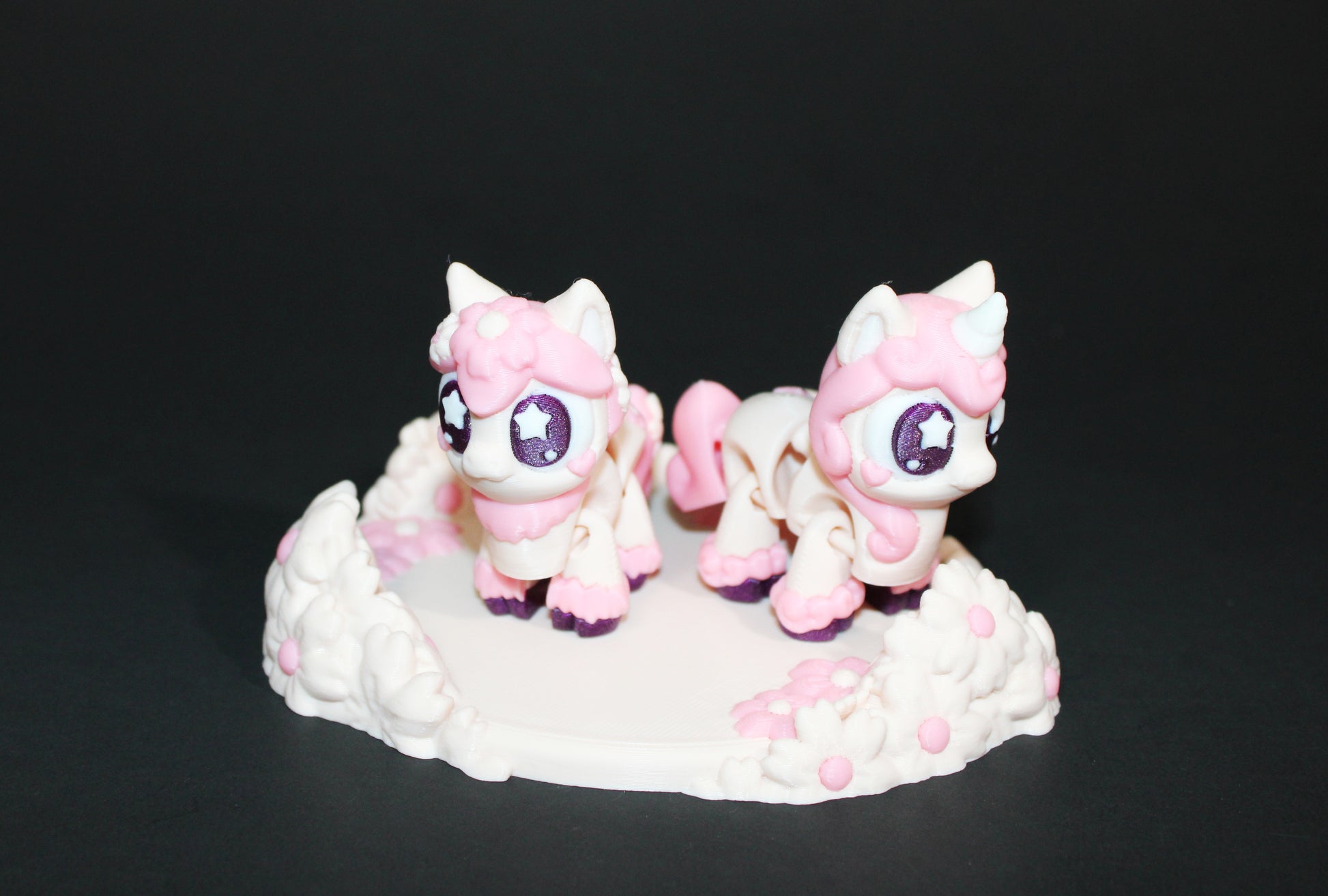 3D Printed Articulated Sakura Unicorn and Sakura Horse or Unicorn and Horse
