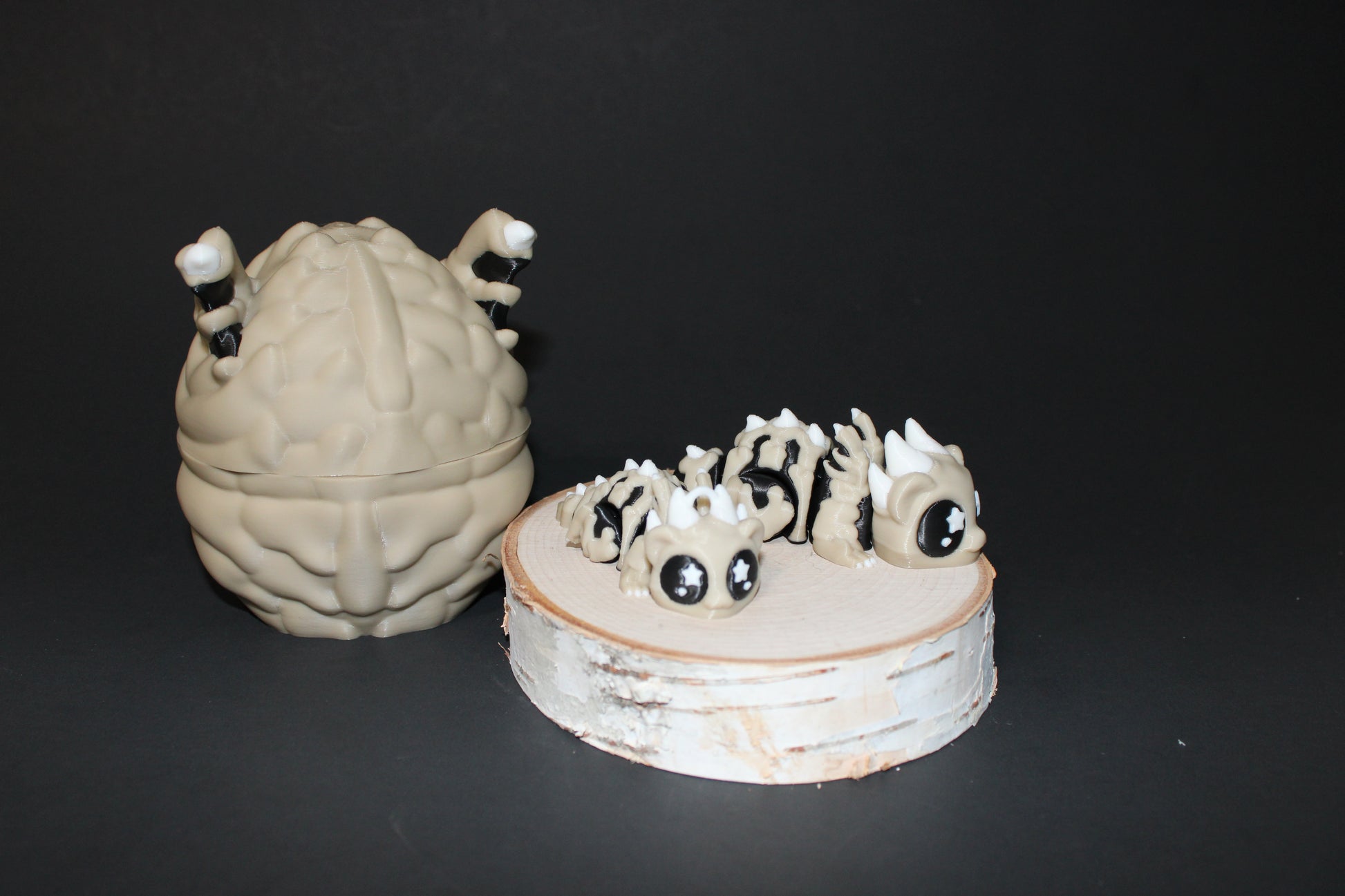 3D Printed Skelly Dragon with Egg 3.75" Long- Egg is 4" Tall