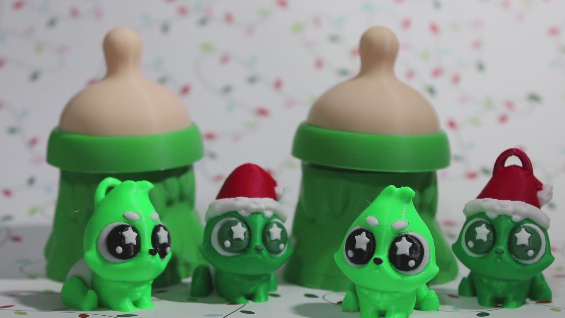 3D-printed Christmas Grumpy baby with Baby Bottle Container