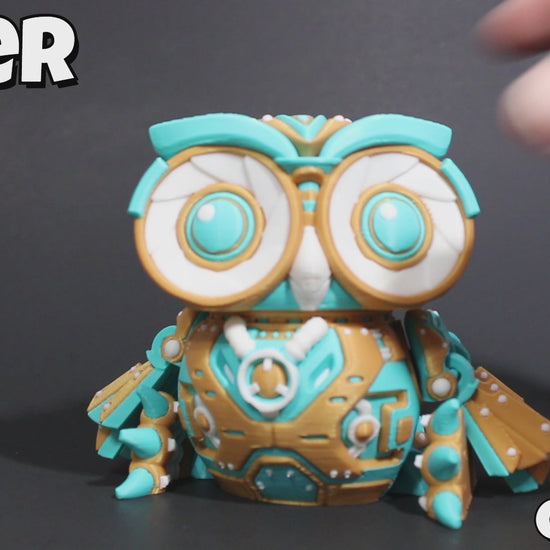 3D Printed Cyber Owl Figurine: Articulated Flexi Toy-4.5" tall